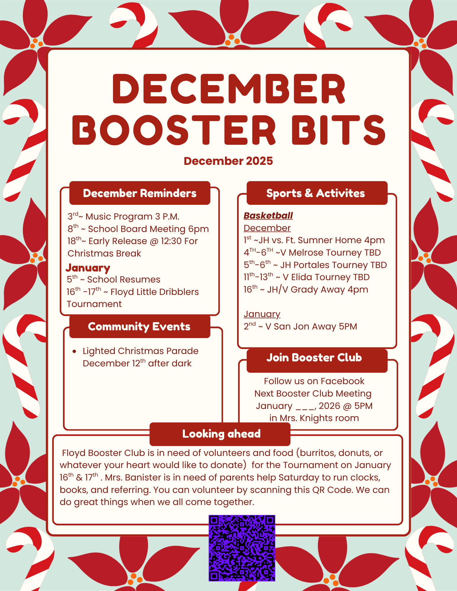 We welcome family involvement! Parents can volunteer, join the Floyd Booster Club, participate in family nights, or attend any number of school events. Your involvement strengthens our school community and supports your child's learning experience! We welcome you to Floyd Municipal Schools!